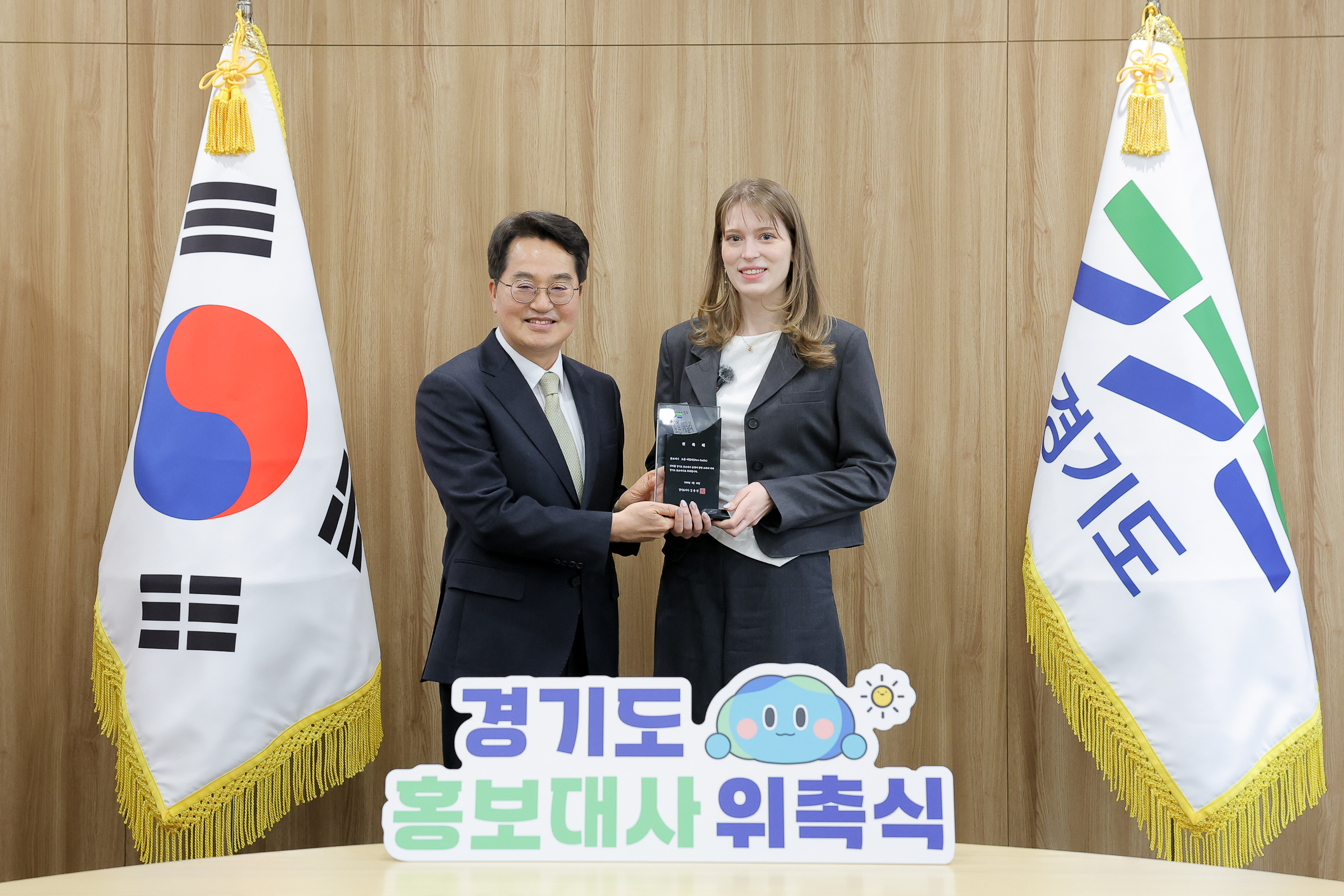 김동연 경기도지사는 26일 도청 집무실에서 2026년 경기도 홍보대사 위촉식을 열고 5명에게 위촉장을 수여했다. 이들은 향후 2년간 문화예술·복지·청소년·국제교류·생활체육 등 도정 주요 정책 홍보 콘텐츠 출연, 도정 홍보행사 참여 등 다양한 활동을 통해 경기도 정책과 가치를 도민과 국내외에 널리 알리는 역할을 수행하게 된다.